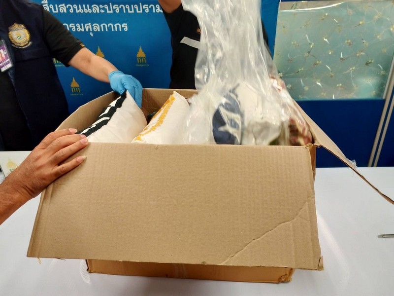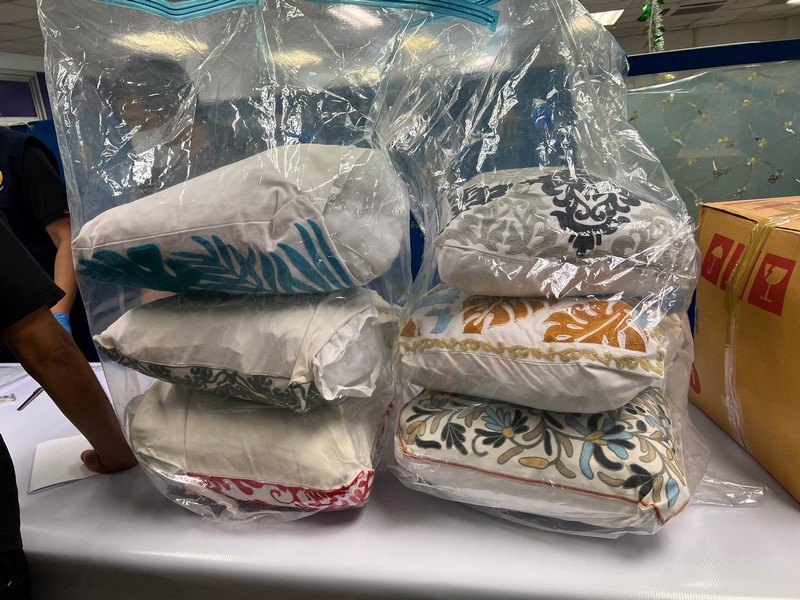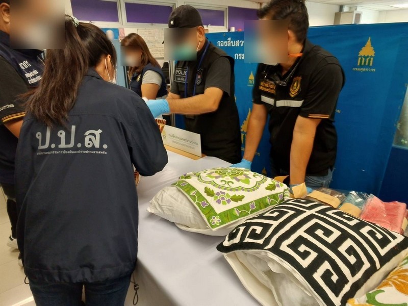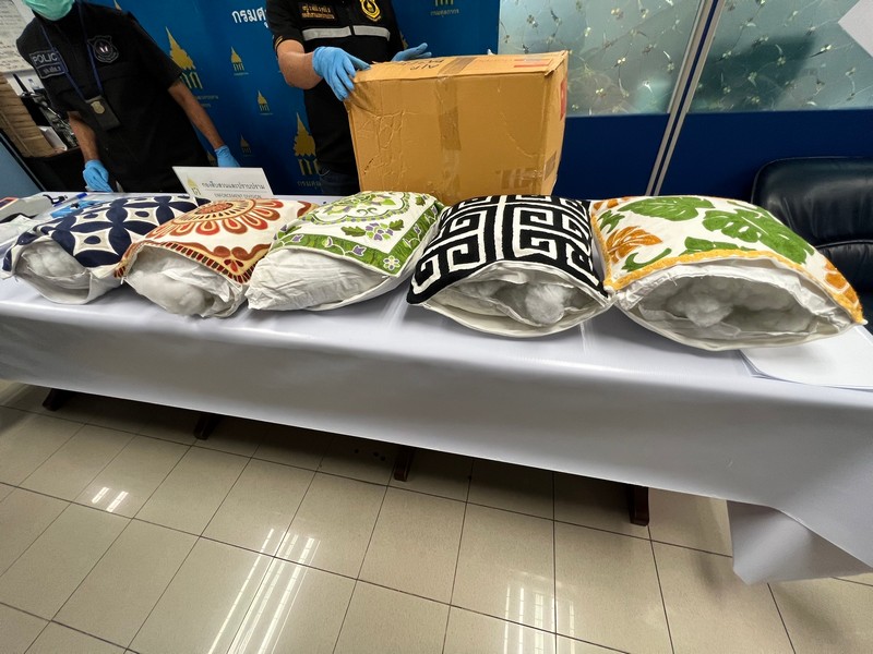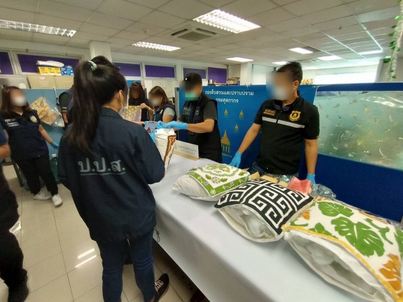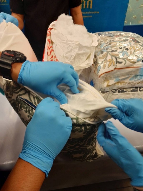 นายวิชัย ไชยมงคล เลขาธิการ ป.ป.ส. กล่าวว่า สืบเนื่องจาก หน่วย AITF มีการสืบทราบข้อมูลการเตรียมส่งยาเสพติดไปยังออสเตรเลียของขบวนการค้ายาเสพติดข้ามชาติ โดยจะส่งผ่านทางการส่งพัสดุภัณฑ์ ที่อาคารคลังสินค้า ท่าอากาศยานสุวรรณภูมิ จากการประเมินความเสี่ยงจากเส้นทาง (Route Cause Analysis) ที่วิเคราะห์เส้นทางของพัสดุจากต้นทาง-ปลายทาง รวมถึงประเมินความผิดปกติจากพัสดุที่สำแดง จึงพบกล่องพัสดุต้องสงสัยจำนวน 2 กล่องภายในเป็นปลอกหมอน 11 ใบ เจ้าหน้าที่ตรวจพบความผิดปกติจากน้ำหนักและความแข็งที่ต่างจากปลอกหมอนทั่วไปหลังการตรวจสอบพบว่าปลอกหมอนทั้งหมดถูกชุบด้วย ยาเสพติดให้โทษประเภท 1 (ไอซ์) กล่องที่ 1 ไอซ์ซุกซ่อนอยู่ในปลอกหมอนชั้นใน จำนวน 6 ใบ น้ำหนักรวมสิ่งห่อหุ้มทั้งหมดประมาณ 6.8 กิโลกรัม กล่องที่ 2 ไอซ์ ซุกซ่อนอยู่ในปลอกหมอนชั้นใน จำนวน 5 ใบ น้ำหนักรวมสิ่งห่อหุ้มทั้งหมดประมาณ 7.14 กิโลกรัม รวมน้ำหนักและสิ่งห่อหุ้มทั้งหมด 13.94 กิโลกรัม