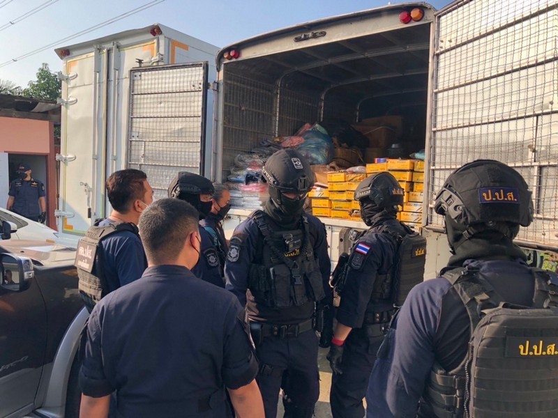 นายวิชัย ไชยมงคล เลขาธิการ ป.ป.ส กล่าวว่า “การปิดล้อมตรวจค้นนำโดยชุดปฏิบัติการพิเศษอินทรีย์ 19 ของสำนักงาน ป.ป.ส. ในพื้นที่ 5 จุด ประกอบด้วย กทม. (2 จุด) จ.นครปฐม (2 จุด) จ.สมุทรสาคร (1 จุด) ตรวจยึด ยานพาหนะ 6 คัน (รถบรรทุก 3 คัน รถยนต์ 3 คัน) เงินสด 45,625 บาท พระเครื่อง/วัตถุมงคล 17 รายการ อาวุธปืน 1 กระบอก พร้อมเครื่องกระสุน กระเป๋าแบรนด์เนม ที่ดินพร้อมสิ่งปลูกสร้าง 2 แปลง และอายัดเงินในบัญชีธนาคาร 3 บัญชี ยอดเงิน 115,631 บาท รวมมูลค่าทรัพย์สินประมาณ 14.6 ล้านบาท เหตุเกิดที่ บ้านพักในพื้นที่ ม.6 ต.ท่าข้าม อ.สามพราน จ.นครปฐม (ซึ่งเปิดเป็นบริษัทประกอบกิจการขนส่งสินค้า) ต่อเนื่อง ต.พันท้ายนรสิงห์ อ.เมือง จ.สมุทรสาคร