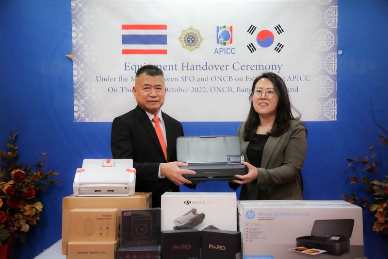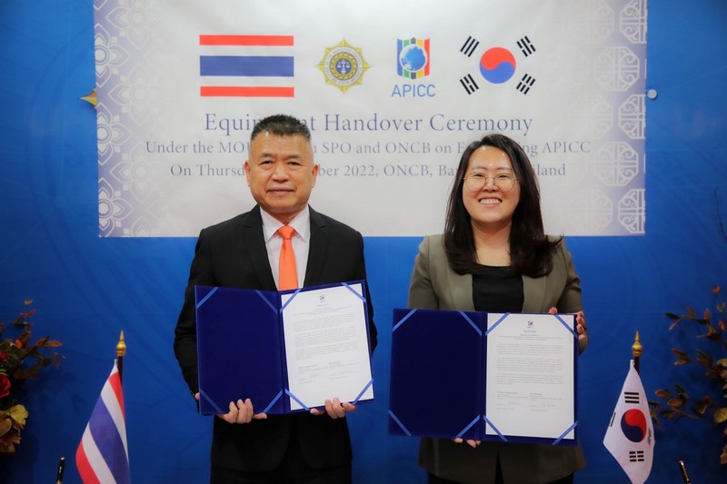 ภายหลังจากการหารือ เลขาธิการ ป.ป.ส. ได้ลงนามใน MOU บันทึกความเข้าใจความร่วมมือ และรับมอบอุปกรณ์สืบสวนภายใต้กรอบความร่วมมือ APICC ร่วมกับ นางสาวคิม โบซอง โดย APICC ได้สนับสนุนอุปกรณ์มาแล้ว 2 ครั้ง ในปี 2562 และ 2564 โดยในปีนี้ เน้นไปที่อุปกรณ์สำหรับการติดตามเป้าหมายเฉพาะราย และเพิ่มศักยภาพในการเข้าถึงพื้นที่ เพื่อเฝ้าระวังและติดตามผู้ต้องสงสัยซุกซ่อนลักลอบนำเข้าและส่งออกยาเสพติดผ่านช่องทางต่างๆ ต่อไป