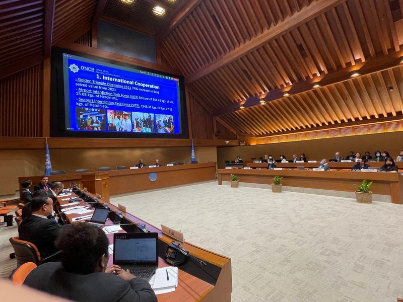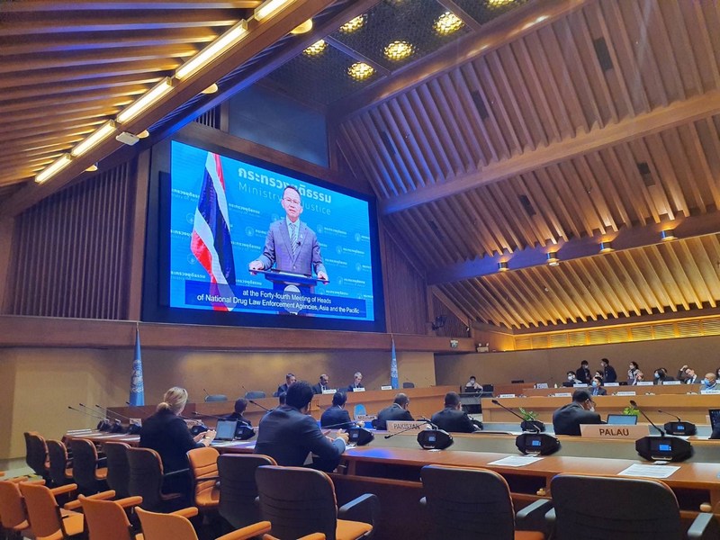 โดยนายสมศักดิ์ เทพสุทิน รัฐมนตรีว่าการกระทรวงยุติธรรม ได้กล่าวแสดงความชื่นชมต่อความพยายามของ UNODC ในการจัดการประชุมครั้งนี้ และกล่าวถึงความท้าทายจากสถานการณ์ปัญหายาเสพติดในภูมิภาคที่ยังคงขยายตัว แม้ในห้วงการแพร่ระบาดของโรคติดเชื้อไวรัสโคโรนา2019 (COVID-19) โดยมีความซับซ้อนและมีแนวโน้มที่รุนแรงมากขึ้นจากภาวะยาเสพติดล้นตลาด เนื่องจากราคายาเสพติดลดลง แต่ความบริสุทธิ์ของยาเสพติดยังคงอยู่ในระดับสูง ในขณะเดียวกันพบว่ามีจำนวนผู้ใช้ยาเสพติดเพิ่มมากขึ้น รวมถึงผู้เสพยาที่มีอาการทางจิตเวชที่ก่อให้เกิดผลกระทบทางสังคม ซึ่งหน่วยงานปราบปรามยาเสพติดทั้งในและนอกภูมิภาคต้องเป็นผู้นำในการสร้างหลักประกันว่าจะไม่มีใครที่ได้รับผลกระทบจากปัญหายาเสพติดถูกทิ้งไว้ข้างหลัง และทำให้สมาชิกทุกคนในสังคมมีความปลอดภัย มีสุขภาวะที่ดี และมีความเป็นอยู่ที่ดีขึ้น แม้ว่าสถิติการจับกุมเมทแอมเฟตามีนสุงสุด จำนวน 172 ตัน ในปี 2564 ที่รวบรวมโดย UNODC เป็นการจับกุมในภูมิภาคเอเชียตะวันออกและตะวันออกเฉียงใต้จำนวนรวมกว่า 1 พันล้านเม็ด และกว่าครึ่งเป็นการจับกุมในประเทศไทย แสดงให้เห็นถึงผลการปฏิบัติงานที่ดีขึ้น