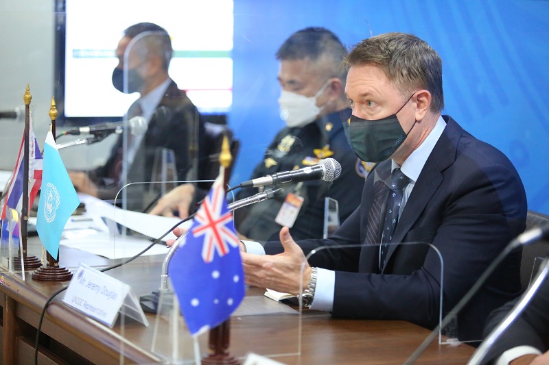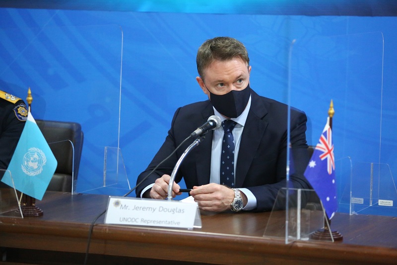 นายเจเรมี ดักลาส (Mr. Jeremy Douglas) ผู้แทนสำนักงานยาเสพติดและอาชญากรรมแห่งสหประชาชาติ ประจำภูมิภาคเอเชียตะวันออกเฉียงใต้และแปซิฟิก กล่าวว่า สถานการณ์ยาเสพติดมีการเปลี่ยนแปลงอย่างเห็นได้ชัด โดยเริ่มตั้งแต่ ปี 2011 จนถึงปัจจุบัน โดยเฉพาะการลักลอบผลิตสารสังเคราะห์หรือไอซ์ในพื้นที่สามเหลี่ยมทองคำ และเหตุการณ์สำคัญเกี่ยวกับสถานการณ์โควิดที่เกิดขึ้น ในปี 2019 – 2021 ที่ผ่านมา หลังจากที่สถานการณ์โควิดเริ่มคงที่ สถานการณ์ยาเสพติดก็กลับมาเช่นเดิม และขยายตัวเพิ่มมากขึ้น โดยเห็นได้จากมีปริมาณยาเสพติดที่จับกุมได้มากขึ้น ซึ่งไม่ใช่เฉพาะพื้นที่ในประเทศไทย รวมถึงประเทศเพื่อนบ้านและประเทศอื่นๆด้วย อย่างไรก็ตาม ทุกประเทศมีความร่วมมือกันเป็นอย่างดี ซึ่ง UNODC นอกจากจะมีความร่วมมือกับประเทศไทยและประเทศต่างๆ และมีความร่วมมือภายใต้โครงการต่างๆ ไม่ว่าจะเป็น โครงการ MOU แม่น้ำโขง โครงการเซฟแม่โขงปลอดภัย โดย UNODC มีจุดเน้นงานที่จะร่วมมือกันในภูมิภาค คือ ความร่วมมือในการควบคุมพื้นที่และสกัดกั้นสารตั้งต้นและเคมีภัณฑ์ตามแนวชายแดน เพื่อไม่ให้มีการลักลอบการนำเข้า-ส่งออก ในพื้นที่สามเหลี่ยมทองคำ รวมถึงในเรื่องของการส่งเสริมการพัฒนาศักยภาพของเจ้าหน้าที่