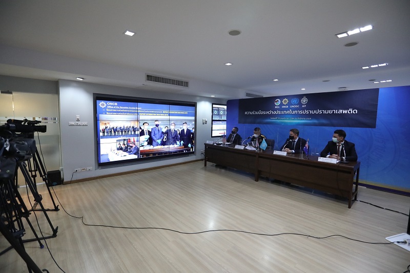 วันที่ 29 .. 64 ที่สำนักงาน ... (ดินแดงนายวิชัย ไชยมงคล เลขาธิการคณะกรรมการป้องกันและปราบปรามยาเสพติด พร้อมด้วยนายเจเรมี ดักลาส (Mr. Jeremy Douglas) ผู้แทนสำนักงานยาเสพติดและอาชญากรรมแห่งสหประชาชาติ ประจำภูมิภาคเอเชียตะวันออกเฉียงใต้และแปซิฟิก นายไซม่อน ลาลิค ( Mr. Simon Lalic) เจ้าหน้าที่อาวุโส สำนักงานตำรวจสหพันธ์ออสเตรเลีย และนาย มิน ที นูเวน          (Mr. Minh T. Nguyen) หัวหน้ากลุ่มสืบสวนสำนักงานปราบปรามยาเสพติด สหรัฐอเมริกา ประจำภูมิภาคตะวันออกไกล แถลงข่าวความร่วมมือในการปราบปรามยาเสพติดระหว่างประเทศ พร้อมความคืบหน้าคดีต่าง