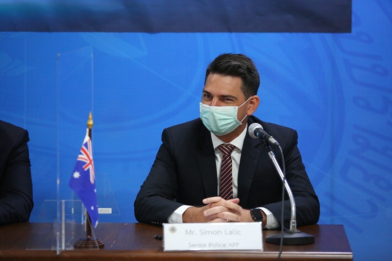 ด้านนายไซม่อน ลาลิค ( Mr. Simon Lalic) เจ้าหน้าที่อาวุโส สำนักงานตำรวจสหพันธ์ออสเตรเลีย กล่าวว่า AFP มีความร่วมมือกับสำนักงาน ..มาเป็นระยะเวลานานแล้ว โดย ล่าสุด เมื่อ 10 วันที่แล้ว จากกรณีการจับกุมและยึดเฮโรอีน 314 กกจากท่าเรือแหลมฉบัง ปลายทางออสเตรเลีย ได้ด้วยการสืบสวนสอบสวนร่วมกัน ซึ่งสามารถจับกุมผู้ต้องหาได้ 2 ราย โดยส่งตัวผู้กระทำผิดไปดำเนินคดีที่ประเทศออสเตรเลีย ซึ่ง 1 ในนั้นเป็นเป้าหมายนักค้ายาเสพติดรายสำคัญที่ออสเตรเลียต้องการ ความสำเร็จนี้จะเป็นไปไม่ได้ถ้าขาดความร่วมมือจาก ..และรัฐบาลไทย ขอขอบคุณและชื่นชมรัฐบาลไทยที่สืบสวนหาคนส่งล็อตยาไปออสเตรเลียได้ เป็นความร่วมมือข้ามแดนระหว่างกันที่ไม่เคยเกิดขึ้นมาก่อน