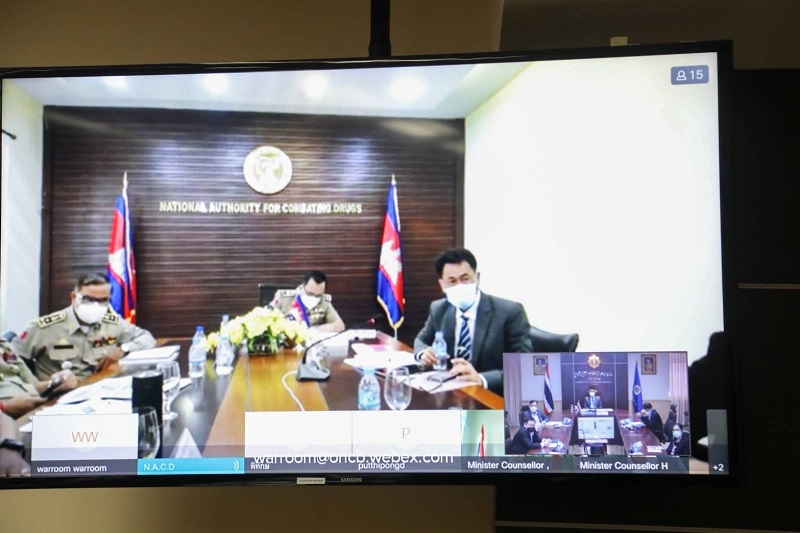 นายวิชัย ไชยมงคล เลขาธิการ ป.ป.ส ประชุมผ่านระบบ Cisco webex ร่วมกับ พลตำรวจเอก เมียะส์ วิริศ​​​ เลขาธิการคณะกรรมการต่อสู้ยาเสพติดแห่งชาติกัมพูชา ในการประชุมครั้งนี้ เจ้าหน้าที่สืบสวนพิเศษ ของสำนักงานปราบปรามยาเสพติดสหรัฐอเมริกา (Drug Enforcement Administration: DEA)  เข้าร่วมเพื่อแลกเปลี่ยนข้อมูลการข่าว และร่วมกันขยายผลจับกุม 2 คดีใหญ่ในกัมพูชา ณ ห้องประชุมศูนย์บัญชาการ สำนักงาน ป.ป.ส