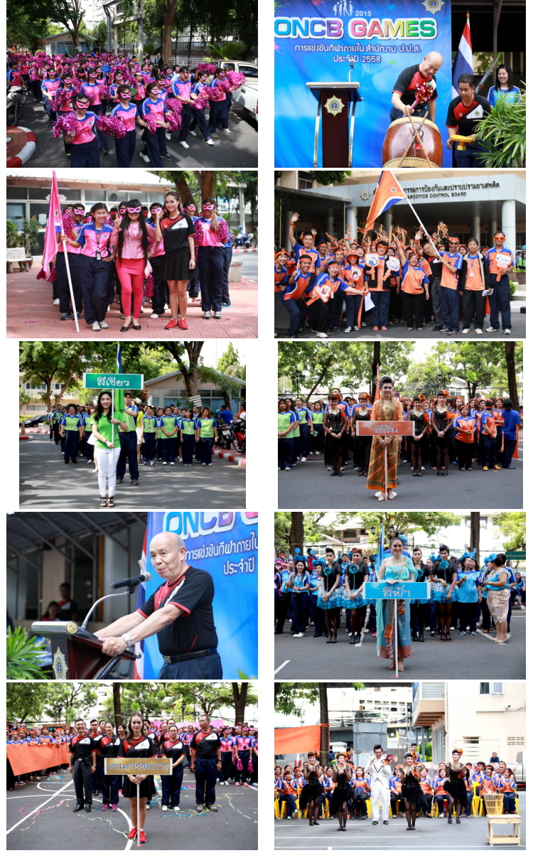 เมื่อวันที่ 23 กรกฎาคม 2558 นายณรงค์ รัตนานุกูล ที่ปรึกษาการป้องกันและปราบปรามยาเสพติด พร้อมด้วยคณะผู้บริหารและเจ้าหน้าที่จากกองสำนักต่างๆ เข้าร่วมในพิธีเปิดการแข่งขันกีฬาภายใน ป.ป.ส. (ONCB GAME 2015) อย่างเป็นทางการ ประจำปี 2558 โดยได้รับเกียรติจาก พล.ต.อ.ชวลิต ยอดมณี อดีตเลขาธิการ ป.ป.ส. เป็นประธานในพิธีเปิด พร้อมด้วยนายชาติชาย สุทธิกลม อดีตเลขาธิการคณะกรรมการสิทธิมนุษยชนแห่งชาติ เข้าร่วมในพิธีเปิดครั้งนี้ด้วย ณ บริเวณ สนามแข่งขันกีฬาอเนกประสงค์หน้า อาคาร 3 สำนักงาน ป.ป.ส. ดินแดง กรุงเทพฯ ในปีนี้ได้กำหนดให้มีการแข่งขันกีฬาสี 4 สี ได้แก่ สีเขียว สีฟ้า สีชมพู และสีส้ม และจัดการแข่งขันกีฬา 8 ประเภทกีฬา ได้แก่ ฟุตซอลชาย 5 คน , แชร์บอล ,วอลเลย์บอล, เทเบิลเทนนิส, เปตอง, แบดมินตัน, ตะกร้อ, กีฬามหาชน พร้อมด้วย การประกวดกองเชียร์