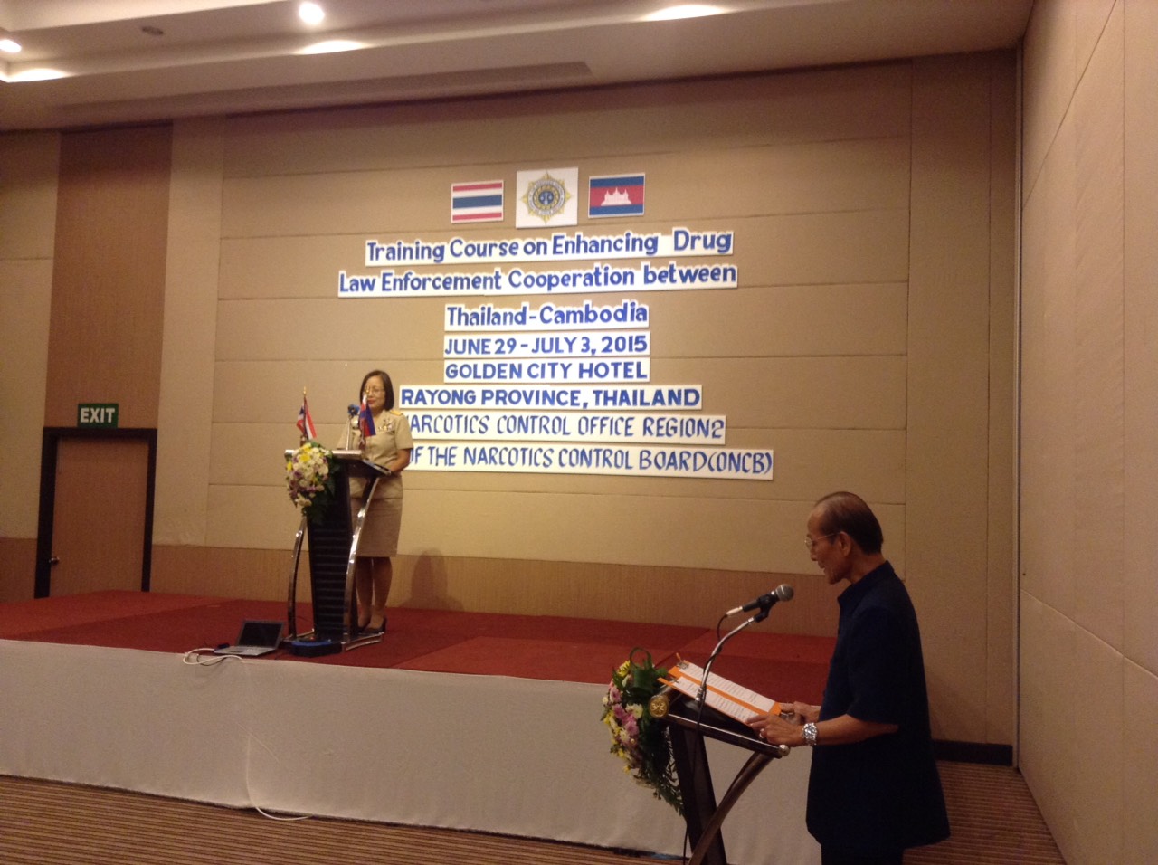 สำนักงาน ปปส.ภาค 2 จัดอบรมโครงการพัฒนากลไกความร่วมมือปราบปรามยาเสพติดพื้นที่ชายแดน ไทย-กัมพูชา ระหว่างวันที่ 29 มิถุนายน – 3 กรกฎาคม 2558 ณ โรงแรมโกเด้นซิตี้ อำเภอเมือง จังหวัดระยอง โดยมีนางสาวรัชนีกร สรสิริ รองเลขาธิการ ป.ป.ส. ให้เกียรติเป็นประธานในพิธีเปิด ผู้เข้าร่วมประกอบด้วยเจ้าหน้าที่สำนักงานประสานงานชายแดนไทย-กัมพูชา (BLO) ด้านจังหวัดสระแก้ว จังหวัดจันทบุรีและจังหวัดตราด และผู้แทน NACD จากพนมเปญ เกาะกงโพธิสัต กรุงไพลิน พระตะบอง และบันเตียเมียนเจย รวม 70 นาย การอบรมในครั้งนี้เป็นการให้ความรู้ในด้านการสืบสวน ตรวจค้น จับกุมยาเสพติดรวมถึงการวิเคราะห์ แลกเปลี่ยนข้อมูลข่าวสารยาเสพติดอันจะนำไปสู่แนวทางการประสานความร่วมมือในการสืบสวน จับกุมปราบรามนักค้าและเครือข่ายยาเสพติด พื้นที่ ไทย-กัมพูชา อย่างมีประสิทธิภาพยิ่งขึ้น