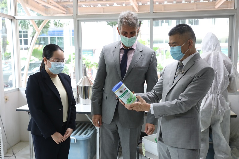 วันอังคารที่ ๒๑ กันยายน ๒๕๖๔ นายวิชัย ไชยมงคล เลขาธิการ ป.ป.ส. เป็นประธานให้การต้อนรับ Mr. Jose Luis Gil Gil ผู้ช่วยทูตฝ่ายมหาดไทย สถานเอกอัครราชทูตสเปนประจำประเทศไทย และคณะ ในโอกาสเข้าเยี่ยมคารวะเพื่อหารือข้อราชการ และในโอกาสเข้ารับตำแหน่ง ณ ประเทศไทย ในการนี้ เลขาธิการ ป.ป.ส. ได้ให้ข้อมูลเกี่ยวกับสถานการณ์ยาเสพติดในประเทศไทย โดยนโยบายหลักด้านการป้องกันและปราบปรามยาเสพติดของประเทศไทย มุ่งเน้นการสกัดกั้นการลำเลียงสารตั้งต้นและเคมีภัณฑ์ไม่ให้เข้าสู่แหล่งผลิต มีการบูรณาการความร่วมมือกับหน่วยงานภาคีทั้งไทยและต่างประเทศ ทั้งนี้ สำนักงาน ป.ป.ส.ยินดีสนับสนุนการดำเนินงานด้านการแลกเปลี่ยนข้อมูลข่าวสาร การสนับสนุนการปฏิบัติการร่วมกับราชอาณาจักรสเปน นอกจากนี้ เลขาธิการ ป.ป.ส. นำคณะผู้แทนจากสถานเอกอัครราชทูตสเปนประจำประเทศไทย เยี่ยมชมศูนย์ปฏิบัติการสำนักงาน ป.ป.ส. เพื่อแสดงให้เห็นถึงการดำเนินการด้านข้อมูลการข่าว การวิเคราะห์ข้อมูล และการประสานงานกับหน่วยงานภาคีต่าง ๆ รวมทั้งได้นำคณะฯ เยี่ยมชมการผลิตยาฟ้าทะลายโจรแบบอัดเม็ดจากเครื่องปั๊มเมทแอมเฟตามีนที่ยึดมาจากผู้ผลิต ซึ่งยาฟ้าทะลายโจรดังกล่าว จะนำไปแจกจ่ายให้แก่นักโทษในเรือนจำต่าง ๆ ซึ่งมีการแพร่ระบาดของโรคติดเชื้อไวรัสโคโรนา 2019 (COVID-19)