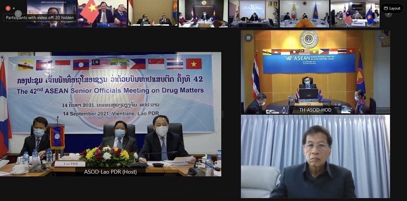 วันอังคารที่ ๑๔ กันยายน ๒๕๖๔ พันตำรวจโท ไพศิษฎ์ สังคหะพงศ์ รองเลขาธิการ ป.ป.ส. เป็นหัวหน้าคณะผู้แทนไทยเข้าร่วมการประชุมเจ้าหน้าที่อาวุโสอาเซียนด้านยาเสพติด ครั้งที่ ๔๒ (The 42nd ASEAN Senior Officials on Drug Matters: ASOD) ผ่านระบบการประชุมทางไกล (Video Conference) ณ สำนักงาน ป.ป.ส. โดยมี นางสาวรัชนีกร สรสิริ ที่ปรึกษาสำนักงาน ป.ป.ส. รศ.ดร. มานพ คณะโต ประธานคณะกรรมการบริหารเครือข่ายองค์กรวิชาการสารเสพติด และผู้แทนจากสำนัก/กองที่เกี่ยวข้อง สำนักงาน ป.ป.ส. เข้าร่วมการประชุมฯ ซึ่งสำนักงานคณะกรรมการแห่งชาติเพื่อตรวจตราและควบคุมยาเสพติด สาธารณรัฐประชาธิปไตยประชาชนลาว(Lao National Commission for Drug Control and Supervision : LCDC) เป็นเจ้าภาพจัดการประชุมฯ ทั้งนี้ ประเทศสมาชิกอาเซียนได้ร่วมกันแลกเปลี่ยนมุมมองเกี่ยวกับความพยายามต่อสู้กับปัญหายาเสพติดในระดับชาติ ระดับภูมิภาค และนานาชาติ ท่ามกลางสถานการณ์การแพร่ระบาดโรคติดเชื้อไวรัสโคโรนา 2019 (COVID-19) ซึ่งประเทศไทยได้นำเสนอความคืบหน้าการดำเนินงานที่สำคัญ โดยเฉพาะการยึดทรัพย์สินเพื่อทำลายเครือข่ายการค้ายาเสพติดและการพัฒนาประมวลกฎหมายยาเสพติด รวมถึงเน้นย้ำความสำคัญของความร่วมมือระหว่างประเทศสมาชิกอาเซียนในการควบคุมยาเสพติดในภูมิภาค