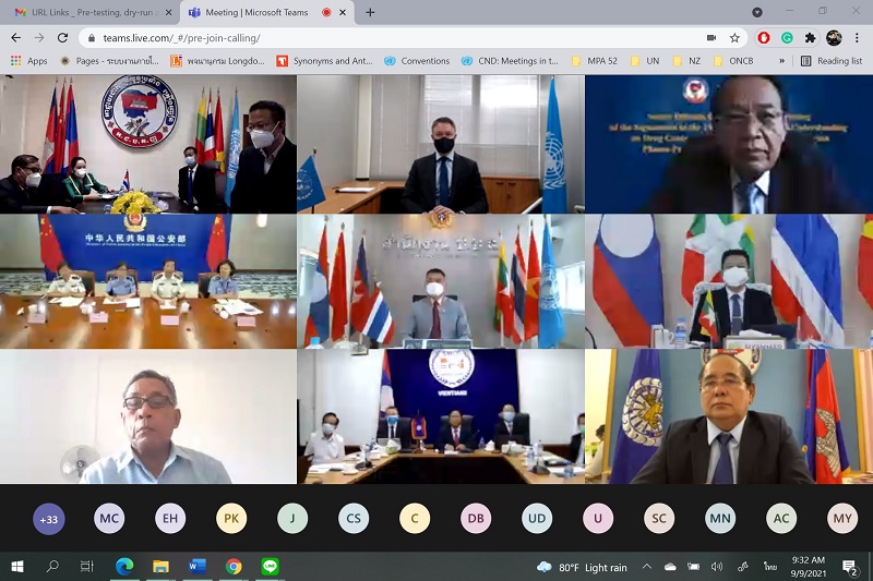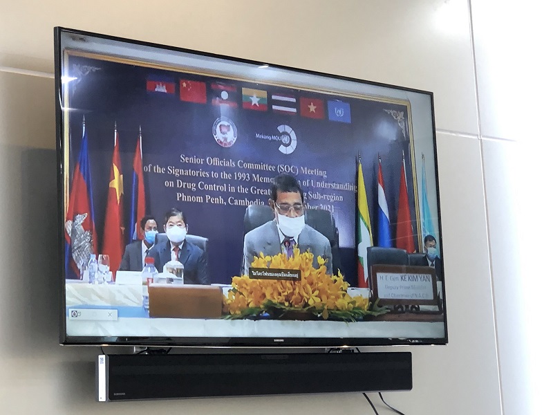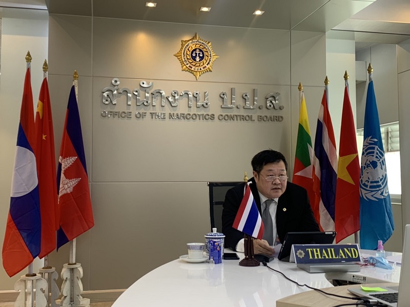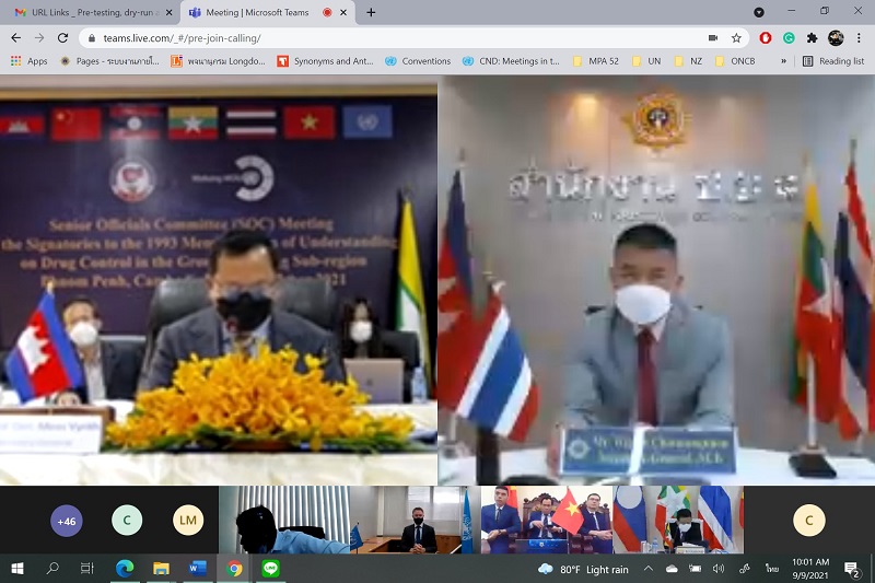 วันพฤหัสบดีที่ ๙ กันยายน ๒๕๖๔ นายวิชัย ไชยมงคล เลขาธิการ ป.ป.ส. เป็นหัวหน้าคณะผู้แทนไทยเข้าร่วมการประชุมภายใต้กรอบบันทึกความเข้าใจ ๗ ฝ่าย ว่าด้วยการควบคุมยาเสพติดในอนุภูมิภาคลุ่มแม่น้ำโขง ผ่านระบบการประชุมทางการไกล (Video Conference) ณ สำนักงาน ป.ป.ส. โดยมี พันตำรวจโท ไพศิษฎ์ สังคหะพงศ์ รองเลขาธิการ ป.ป.ส. และคณะผู้แทนจากประเทศในอนุภูมิภาคลุ่มแม่น้ำโขง ๖ ประเทศ (ราชอาณาจักรกัมพูชา สาธารณรัฐประชาชนจีน สาธารณรัฐประชาธิปไตยประชาชนลาว สาธารณรัฐแห่งสหภาพเมียนมา ประเทศไทย สาธารณรัฐสังคมนิยมเวียดนาม และสำนักงานว่าด้วยยาเสพติดและอาชญากรรมแห่งสหประชาชาติ (United Nations Office on Drugs and Crime : UNODC) ทั้งนี้ประเทศไทยได้ร่วมแลกเปลี่ยนสถานการณ์ปัญหายาเสพติดและผลการดำเนินงานตามแผนปฏิบัติการแก้ไขปัญหายาเสพติดในอนุภูมิภาค ฉบับที่ ๑๑ ใน ๔ แผนงานหลัก ได้แก่ ยาเสพติดและสุขภาพ ความร่วมมือด้านการปราบปราม ความร่วมมือด้านกฎหมายและอาญา และการพัฒนาทางเลือกอย่างยั่งยืน นอกจากนี้ได้เน้นย้ำให้ทุกประเทศในอนุภูมิภาคลุ่มแม่น้ำโขง ให้ความสำคัญกับการป้องกันยาเสพติดในเด็กและเยาวชน การพัฒนาและเสริมสร้างศักยภาพเจ้าหน้าที่บังคับใช้กฎหมาย รวมถึงนำเสนอแผนงานของประเทศไทยเพื่อเตรียมการจัดตั้งวิทยาลัยป้องกันและปราบปรามยาเสพติด (วปส.) ในพื้นที่หอฝิ่น อุทยานสามเหลี่ยมทองคำ จังหวัดเชียงราย ให้เป็นศูนย์ฝึกอบรมระหว่างประเทศด้านป้องกันและปราบปรามยาเสพ ในการนี้ที่ประชุมเห็นชอบที่จะขยายระยะเวลาการดำเนินงานตามแผนปฏิบัติการฯ  ฉบับที่ ๑๑ โดยกำหนดการทบทวนสาระสำคัญของแผนปฏิบัติการฉบับดังกล่าว ในเดือนตุลาคม ๒๕๖๔
