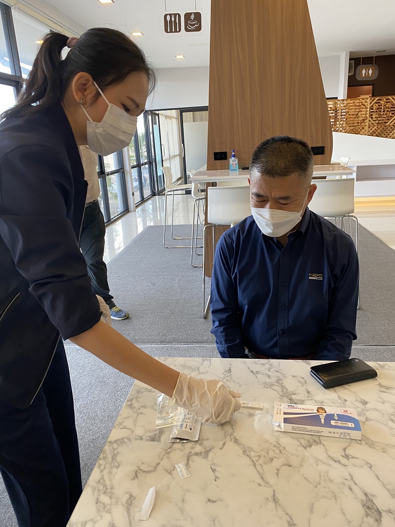 นายวิชัย กล่าวอีกว่า ในส่วนทีมผู้ติดตามของรัฐมนตรี ก็ได้มีการตรวจหาเชื้อด้วยชุดตรวจ ATK หมดทุกคนก่อนที่จะเดินทางมา ซึ่งผลเป็นลบทุกคน ส่วนพื้นที่จัดงาน ได้ประสานสาธารณสุขอำเภอช่วยตรวจคัดกรองอีกครั้งก่อนเข้างาน ทั้งการวัดอุณหภูมิ ล้างมือด้วยแอลกอฮอล์ และการเว้นระยะห่าง โดยพื้นที่จัดงานเป็นอาคารศาลาวัด ซึ่งเป็นพื้นที่โล่ง อากาศถ่ายเทได้สะดวก ผู้เข้าร่วมงานไม่ได้แออัด มีการนั่งห่างกันตามมาตรฐานที่สาธารณสุขกำหนด ส่วนการรับมอบประกาศนียบัตร ผู้ที่รับไม่ได้รับกับมือของนายสมศักดิ์ แต่ให้ขึ้นไปถ่ายรูปคู่ทีละคนและมีฉากที่เป็นกระจกใสกั้นไว้ ซึ่งกรณีของ ผบ.เรือนจำ อ.ปากพนัง ได้รับแจ้งว่า ก่อนที่จะมาร่วมต้อนรับคณะ ได้มีการตรวจ Rapid test ที่เรือนจำเวลา 11.00 น. ผลเป็นลบ จึงเข้าร่วมงาน และไม่ได้มีการพูดคุยใกล้ชิดกับคณะ ส่วนจะติดเชื้อจากที่ใดคงต้องมีการสืบสวนโรคกันต่อไป