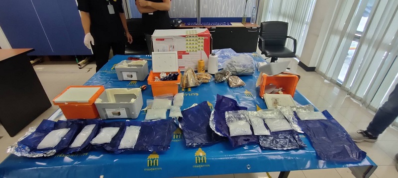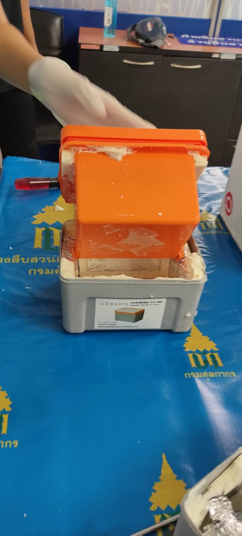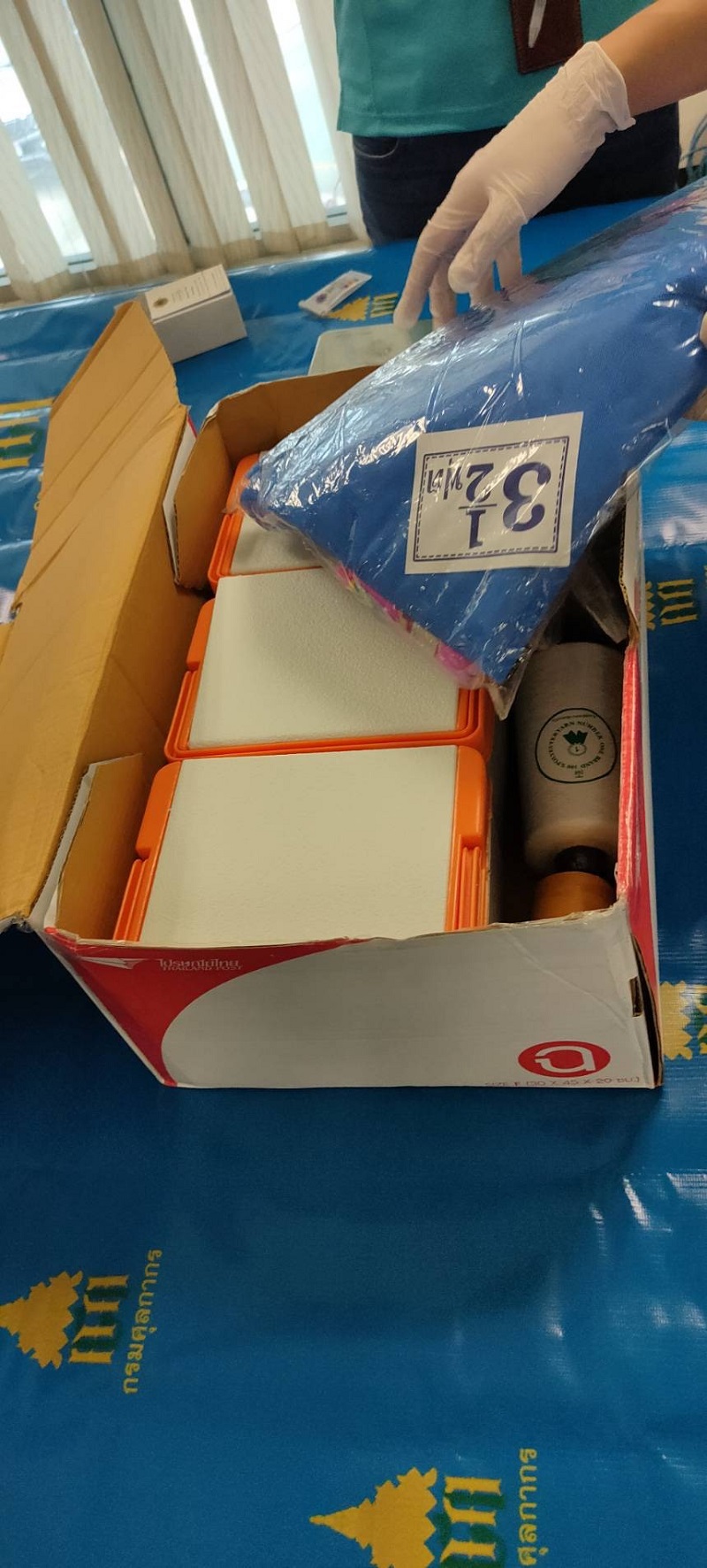 นายวิชัย ไชยมงคล เลขาธิการคณะกรรมการป้องกันและปราบปรามยาเสพติด (เลขาธิการ ป.ป.ส.) เผยวันที่ 16 กรกฎาคม 2564 หน่วยสกัดกั้นยาเสพติดท่าอากาศยาน หรือ Airport Interdictoin Task Force (AITF) ประกอบด้วย สำนักงาน ป.ป.ส. ศุลกากร บช.ปส. และ ศรภ. ตรวจยึด ไอซ์ 1,034 กรัม ซุกซ่อนในกระติกเก็บความเย็นขนาดเล็ก 3 ใบ ณ ศูนย์ไปรษณีย์ขาออก สุวรรณภูมิ ส่งมาจากจังหวัดเชียงราย เตรียมส่งออกไปปลายทางประเทศอิสราเอลผลการตรวจสอบ พบยาเสพติดให้โทษประเภท 1 ไอซ์ (เมทแอมฟาตามีน) น้ำหนักรวมสิ่งห่อหุ้มประมาณ 1,034 กรัมซุกซ่อนอยู่ภายในผนังกระติกน้ำแข็งขนาดเล็ก เก็บความเย็น จำนวน 3 กล่อง กล่องที่ 1 น้ำหนัก 342 กรัม กล่องที่ 2 น้ำหนัก 350 กรัม กล่องที่ 3 น้ำหนัก 342 กรัม จึงร่วมกันทำการตรวจยึด และรวบรวมพยานหลักฐาน และจะนำของกลางส่งพนักงานสอบสวน บช.ปส. เพื่อดำเนินคดีตามกฎหมาย และสืบสวนขยายผลผู้ส่งยาเสพติดต่อไป
