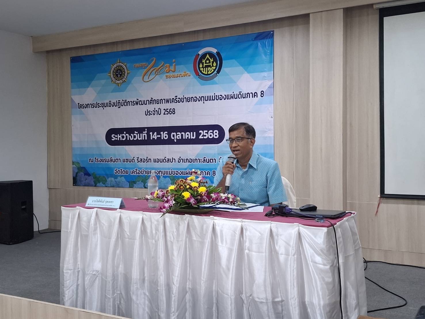 วันพุธที่ 15 ตุลาคม 2568 นายโชติพันธ์ จุลเพชร ผอ.ปปส.ภ.8 และ เจ้าหน้าที่ เข้าร่วมโครงการประชุมเชิงปฏิบัติการพัฒนาศักยภาพเครือข่ายกองทุนแม่ของแผ่นดินภาค 8 ณ โรงแรมลันตาแซนด์ รีสอร์ท แอนด์ สปา อำเภอเกาะลันตา จังหวัดกระบี่