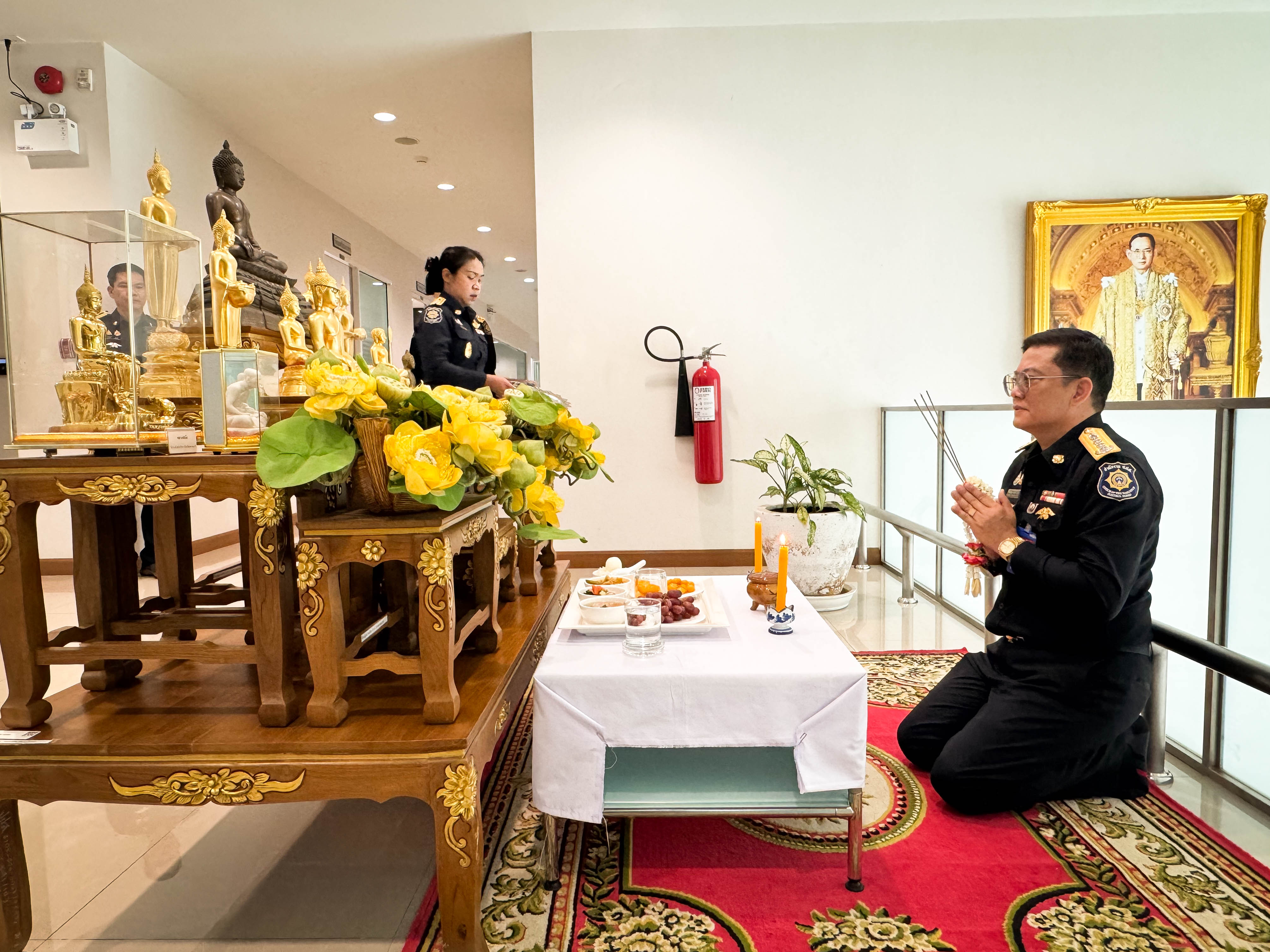 วันที่ 3 พฤศจิกายน 2568 เวลา 09.09 น. นายทิพเมษฐ์ สังขวรรณะ ผอ.ปปส. ภาค 7 นำคณะผู้บริหาร ข้าราชการและเจ้าหน้าที่ ปปส. ภาค 7 เข้าสักการะสิ่งศักดิ์สิทธิ์ประจำสำนักงาน ปปส. ภาค 7 เพื่อความป็นสิริมงคลก่อนเริ่มปฏิบัติหน้าที่