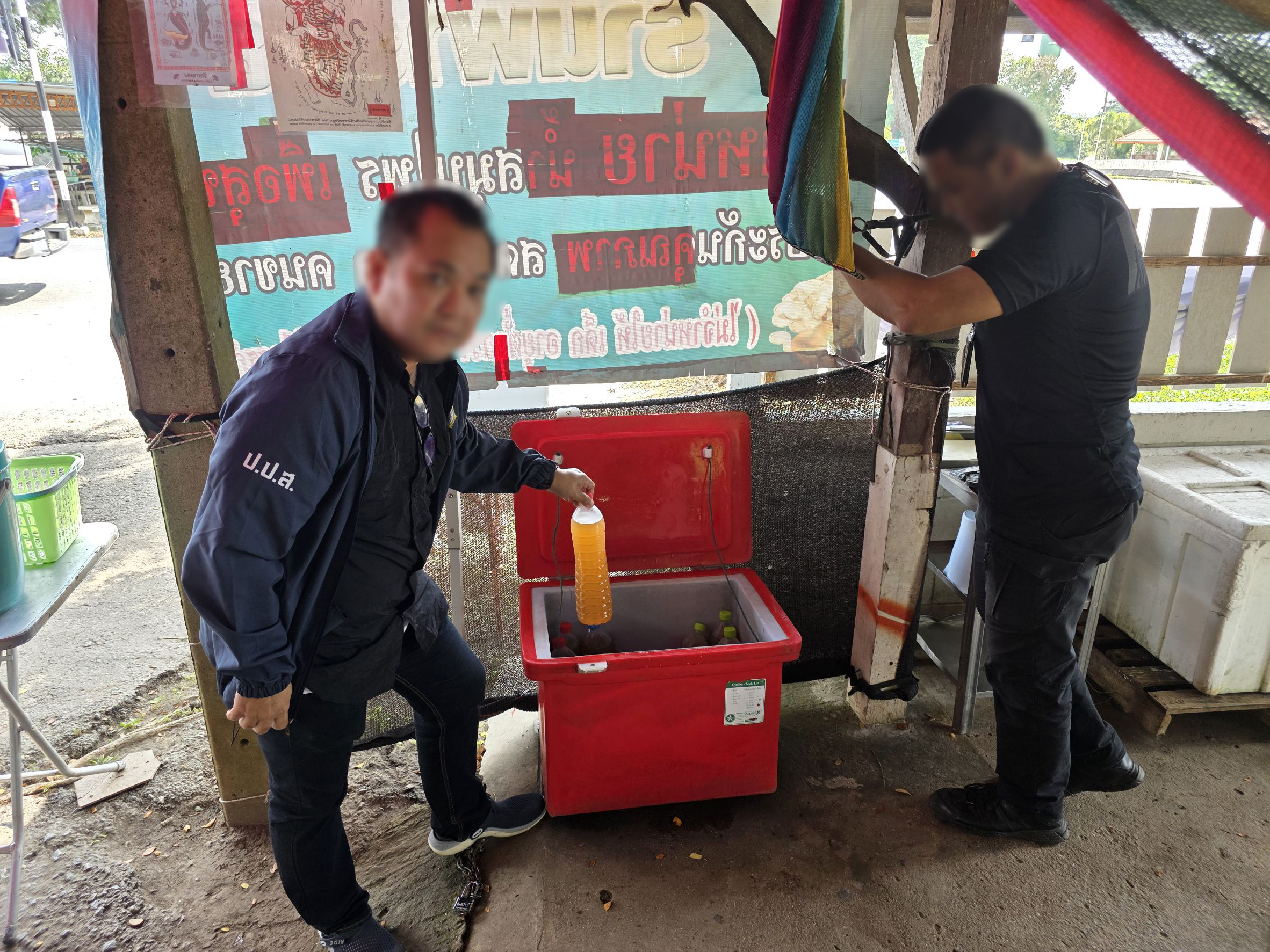 - ต่อมาวันที่ 12 พฤศจิกายน 2568 ชุดปฏิบัติการ ปปส. ภาค 7 เข้าดำเนินการตรวจสอบบริเวณหน้าโรงเรียนเชื่อนเพชร(ชลประทานสงเคราะห์) บ้านท่าซิก หมู่ 6 ต.ท่าคอย อ.ท่ายาง จ.เพชรบุรี พบเต็นท์ร้านค้าแผงลอยด้านหน้าอาคารเอนกประสงค์ริมถนน จึงเข้าดำเนินการตรวจสอบ พบว่าบริเวณแผงลอยเปิดขายลูกชิ้นทอด ด้านข้างมีถังโฟมปิดป้ายว่า ท่อม พบว่าเจ้าของกิจการ คือ นาย เอ. (นามสมมุติ) ชาว ต.เปร็ง อ.บางบ่อ จ.สมุทรปราการ แต่มาอาศัยอยู่บ้านภรรยาที่พื้นที่ตำบลท่าคอย จึงได้แจ้งข้อกฎหมายแก่ร้านขายพืชกระท่อมดังกล่าว ในการขายใบกระท่อมสดและน้ำต้มใบกระท่อม บริเวณริมถนนสาธารณะ และถึงแม้จะมีการติดป้ายประกาศหรือแจ้ง ณ สถานที่ขาย ให้ทราบถึงข้อห้ามขายแก่บุคคล ตามมาตรา 24 แต่ยังถือการขายในสถานที่ห้ามขาย มาตรา 25 แห่งพระราชบัญญัติพืชกระท่อม พ.ศ. 2565 จึงได้ดำเนินการบันทึกแจ้งการกระทำความผิดทางพินัยฯ เพื่อจะส่งเรื่องให้องค์คณะฯ พิจารณา และดำเนินการปรับเป็นพินัย ต่อบุคคลดังกล่าวตามกฎหมายในลำดับต่อไป