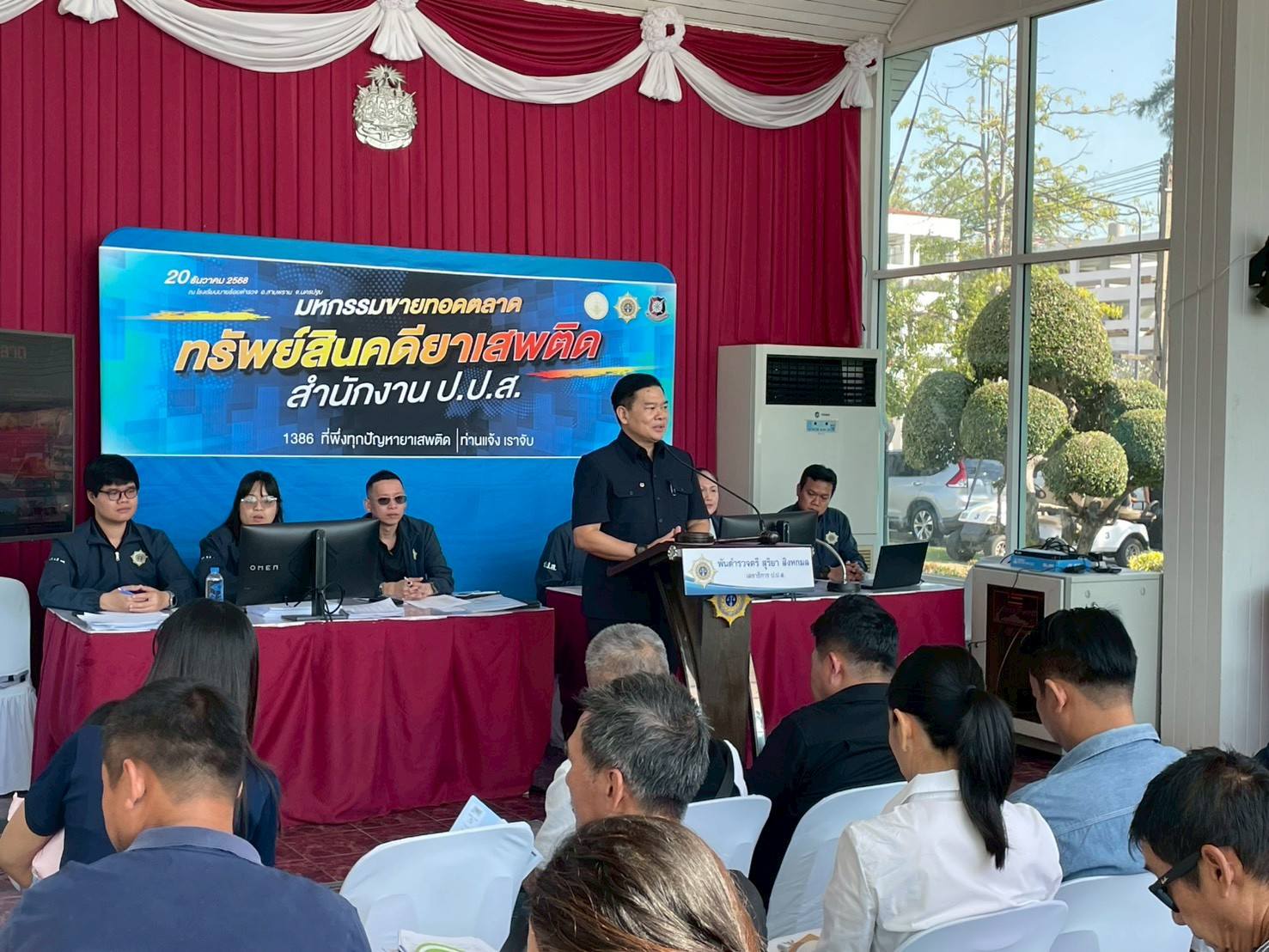 วันที่ 20 ธันวาคม 2568 นายทิพเมษฐ์ สังขวรรณะ ผอ.ปปส.ภ.7 มอบหมายให้ นายปริญญา สว่างสินธุ์ พร้อมคณะเจ้าหน้าที่ รวม 6 นาย เข้าร่วมอำนวยความสะดวกใน "งานมหกรรมขายทอดตลาดทรัพย์สินที่ไม่เหมาะสมที่จะเก็บรักษาไว้ ครั้งที่ 2/2568" ณ โรงเรียนนายร้อยตำรวจ อ.สามพราน จ.นครปฐมโดยได้รับเกียรติจาก พ.ต.ต. สุริยา สิงหกมล เลขาธิการ ป.ป.ส. เป็นประธานในพิธีเปิด พร้อมด้วยคณะผู้บริหารสำนักงาน ป.ป.ส.