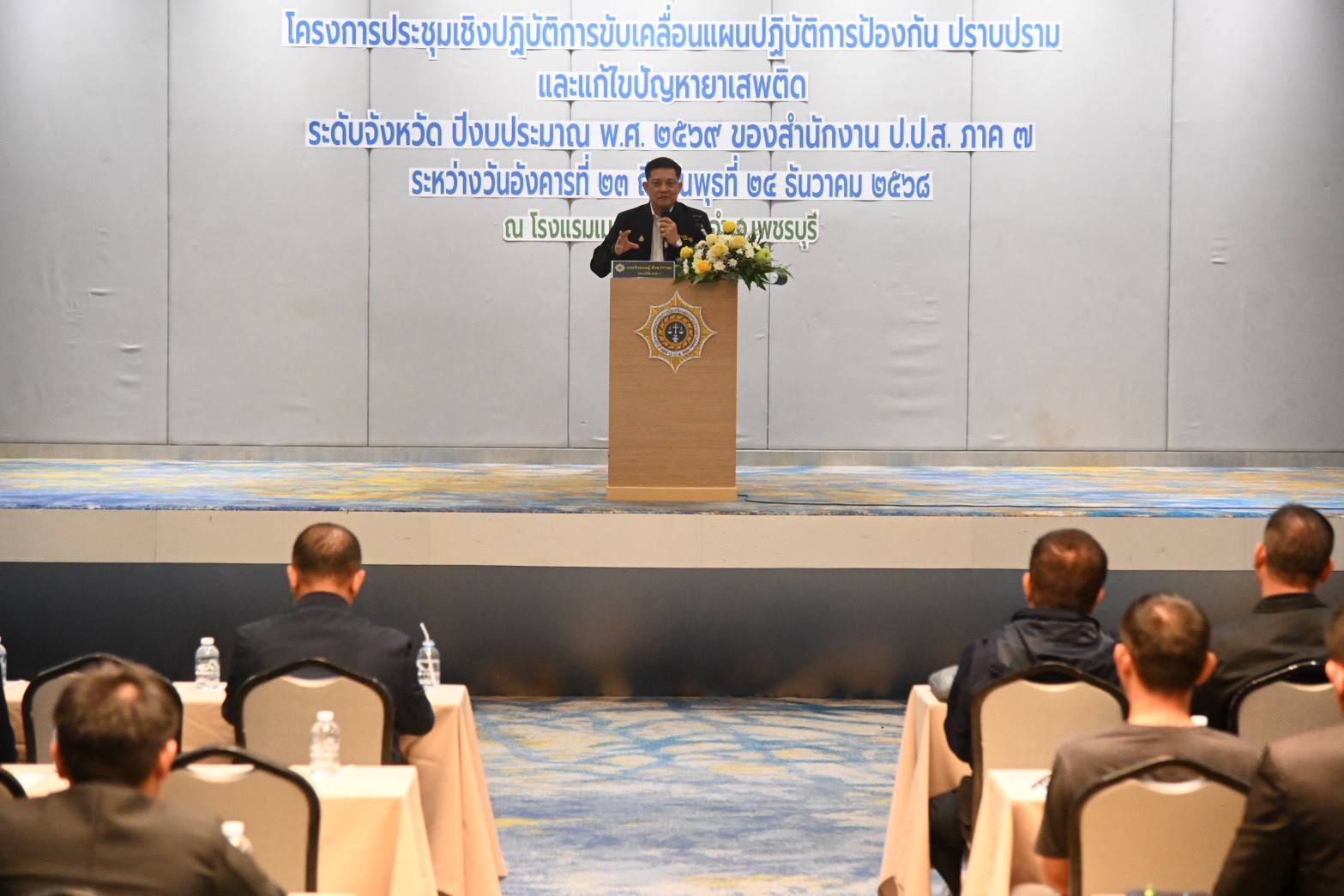 วันที่ 23 - 24 ธันวาคม 2568 ปปส. ภาค 7 จัดประชุมเชิงปฏิบัติการระดับจังหวัด ประจำปีงบประมาณ พ.ศ. 2569 ณ โรงแรมเมธาวลัย ชะอำ จ.เพชรบุรี นายทิพเมษฐ์ สังขวรรณะ ผู้อำนวยการ ปปส. ภาค 7 เป็นประธานเปิดการประชุมเชิงปฏิบัติการฯ โดยมี นางมนัญญา ไวอัมภา ผู้อำนวยการส่วนยุทธศาสตร์และอำนวยการ เป็นผู้กล่าวรายงานถึงความสำคัญของการรวมพลังผู้ปฏิบัติงานหลักจาก 8 จังหวัดในพื้นที่รับผิดชอบและหน่วยงานที่เกี่ยวข้องกว่า 230 ราย เพื่อร่วมกันกำหนดทิศทางการทำงานในอนาคต สำหรับการจัดโครงการในครั้งนี้ มีวัตถุประสงค์หลักที่สำคัญ 3 ประการ คือ: เพื่อสร้างการบูรณาการแบบไร้รอยต่อ:เชื่อมโยงกลไกการทำงานระหว่างหน่วยงานส่วนกลางและส่วนภูมิภาคให้เป็นเนื้อเดียวกัน สอดรับกับนโยบายรัฐบาลและยุทธศาสตร์ชาติอย่างมีเอกภาพ เพื่อวิเคราะห์และถอดบทเรียน: ศึกษาทบทวนสถานการณ์ยาเสพติดในปัจจุบัน พร้อมนำปัญหาและอุปสรรคจากการดำเนินงานที่ผ่านมามาวิเคราะห์ เพื่ออุดช่องว่างและเพิ่มประสิทธิภาพในการทำงานเชิงลึก เพื่อจัดทำแผนปฏิบัติการรายจังหวัด: ผ่านกิจกรรม Workshop ที่มุ่งเน้นการกำหนดเป้าหมายเชิงตัวเลข กรอบกิจกรรม และการจัดสรรงบประมาณให้เหมาะสมกับบริบทของแต่ละพื้นที่ เพื่อให้การแก้ปัญหาตอบโจทย์ความเดือดร้อนของประชาชนอย่างแท้จริง