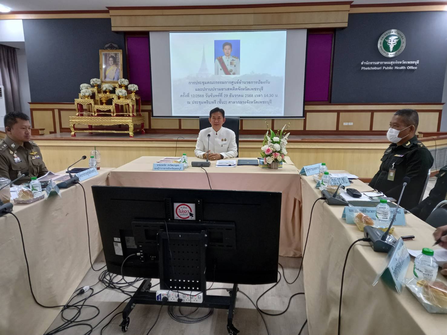 วันที่ 29 ธันวาคม 2568 เวลา 14.30 น. ณ ห้องประชุม 1 พระนครคีรี ชั้น 5 อำเภอเมือง จังหวัดเพชรบุรี นายทิพเมษฐ์ สังขวรรณะ ผู้อำนวยการสำนักงานป้องกันและปราบปรามยาเสพติดภาค 7 และเจ้าหน้าที่ ได้เข้าร่วมประชุมคณะกรรมการศูนย์อำนวยการป้องกันและปราบปรามยาเสพติดจังหวัดเพชรบุรี (ศอ.ปส.จ.พบ.) ครั้งที่ 12/2568 โดยมี นายภคพัส ส่งวัฒนายุทธ รองผู้ว่าราชการจังหวัดเพชรบุรี เป็นประธานในที่ประชุม พร้อมด้วยผู้แทนส่วนราชการและหน่วยงานที่เกี่ยวข้องรวมทั้งสิ้น 75 ท่าน