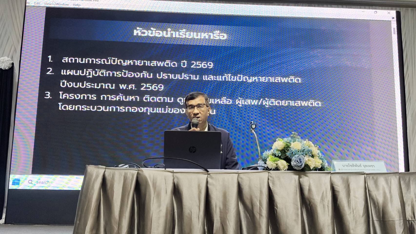 วันอังคารที่ 20 มกราคม 2569 สำนักงาน ปปส. ภาค 8 ร่วมกับ คณะกรรมการเครือข่ายกองทุนแม่ของแผ่นดินจังหวัดสุราษฎร์ธานี และ สำนักงานพัฒนาชุมชนจังหวัดสุราษฎร์ธานี จัดโครงการพัฒนาศักยภาพกองทุนแม่ของแผ่นดินในการค้นหา ดูแลช่วยเหลือ ผู้เสพผู้ติดยาเสพติด พื้นที่สุราษฎร์ธานี ณ โรงแรมนิภาการ์เด้น อำเภอเมืองสุราษฎร์ธานี จังหวัดสุราษฎร์ธานี
