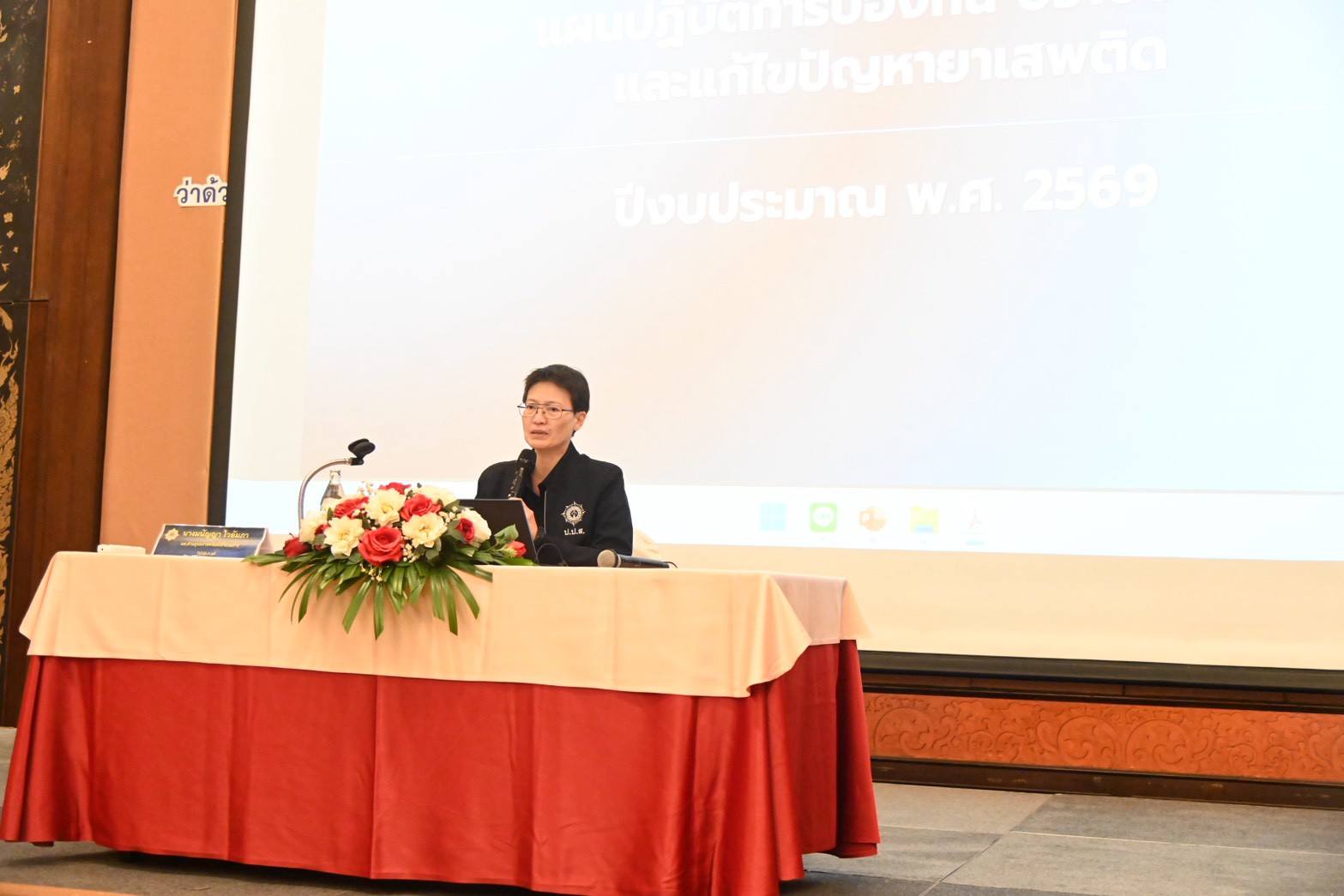 วันที่ 26–27 มกราคม 2569 สำนักงานป้องกันและปราบปรามยาเสพติด ภาค 7 จัดโครงการประชุมเชิงปฏิบัติการแนวทางการรายงานผลการดำเนินงานตามนโยบายและแผนระดับชาติว่าด้วยการป้องกัน ปราบปราม และแก้ไขปัญหายาเสพติด ประจำปีงบประมาณ พ.ศ. 2569 ณ โรงแรมไมด้า แกรนด์ ทวารวดี นครปฐม และมหาวิทยาลัยราชภัฏนครปฐม จังหวัดนครปฐม โดยมี นายทิพเมษฐ์ สังขวรรณะ ผู้อำนวยการสำนักงานป้องกันและปราบปรามยาเสพติด ภาค 7 เป็นประธานในพิธีเปิด พร้อมมอบนโยบายและแนวทางการขับเคลื่อนงานด้านการป้องกัน ปราบปราม และแก้ไขปัญหายาเสพติดแก่ผู้เข้าร่วมประชุม การจัดโครงการดังกล่าวมีวัตถุประสงค์เพื่อเสริมสร้างความรู้ ความเข้าใจแก่เจ้าหน้าที่ผู้ปฏิบัติงานในพื้นที่เกี่ยวกับยุทธศาสตร์ แผนงาน และแนวทางการดำเนินงานตามนโยบายและแผนระดับชาติ รวมถึงการรายงานผลการดำเนินงานให้เป็นไปตามหลักเกณฑ์และระเบียบที่เกี่ยวข้อง โดยมุ่งเน้นการรายงานข้อมูลผ่านระบบสารสนเทศยาเสพติดจังหวัด (NISPA+) และระบบข้อมูลการบำบัดรักษาและฟื้นฟูผู้ติดยาเสพติดของประเทศ (บสต.) ให้มีความถูกต้อง เป็นปัจจุบัน และมีประสิทธิภาพผู้เข้าร่วมประชุมประกอบด้วย เจ้าหน้าที่จากศูนย์อำนวยการป้องกันและปราบปรามยาเสพติดจังหวัด (ศอ.ปส.จ.) ศูนย์ปฏิบัติการป้องกันและปราบปรามยาเสพติดอำเภอ (ศป.ปส.อ.) ศูนย์ปฏิบัติการป้องกันและปราบปรามยาเสพติดองค์กรปกครองส่วนท้องถิ่น (ศป.ปส.อปท.) ในพื้นที่รับผิดชอบของสำนักงาน ปปส.ภาค 7 รวมถึงเจ้าหน้าที่สำนักงาน ปปส.ภาค 7 และวิทยากร รวมจำนวนทั้งสิ้น 122 คน รูปแบบการดำเนินกิจกรรมประกอบด้วย การบรรยายชี้แจงนโยบายและแผนระดับชาติว่าด้วยการป้องกัน ปราบปราม และแก้ไขปัญหายาเสพติด ประจำปีงบประมาณ พ.ศ. 2569 การชี้แจงแนวทางการกำกับติดตามและประเมินผลการดำเนินงานในระดับจังหวัด ตลอดจนการฝึกปฏิบัติการรายงานผลการดำเนินงานผ่านระบบ NISPA+ และระบบ บสต. โดยได้รับความอนุเคราะห์วิทยากรจากสำนักงานสาธารณสุขจังหวัดสุพรรณบุรี สำนักพัฒนาการป้องกันและแก้ไขปัญหายาเสพติด สำนักงาน ป.ป.ส. และสำนักงาน ปปส.ภาค 7