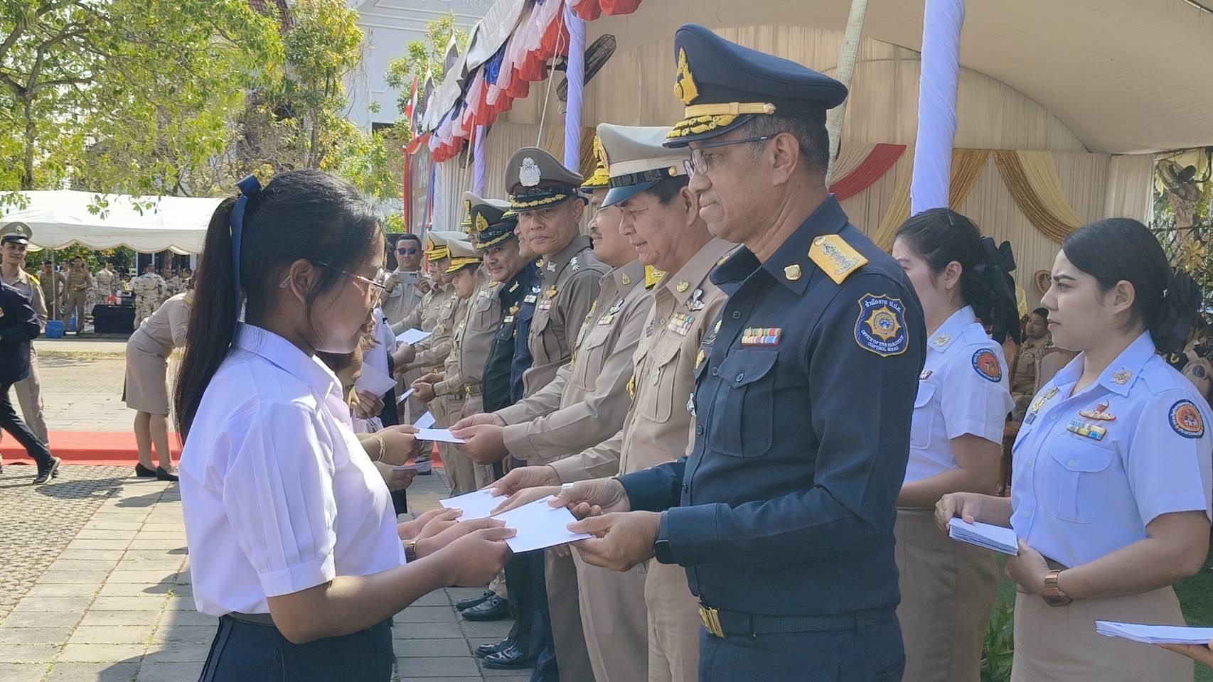 ในโอกาสนี้ ผู้ว่าราชการจังหวัดสุราษฎร์ธานี ได้นำสมาชิกกองอาสารักษาดินแดนกล่าวคำสัตย์ปฏิญาณ อ่านสารของผู้บัญชาการกองอาสารักษาดินแดน กล่าวให้โอวาทแก่กำลังพล และมอบทุนการศึกษาแก่บุตรสมาชิกกองอาสารักษาดินแดน บุตรข้าราชการ และลูกจ้างในสังกัดกระทรวงมหาดไทย รวมทั้งสิ้น จำนวน 136 ทุน เพื่อเป็นการส่งเสริมด้านการศึกษาและสร้างขวัญกำลังใจแก่ครอบครัวกำลังพล