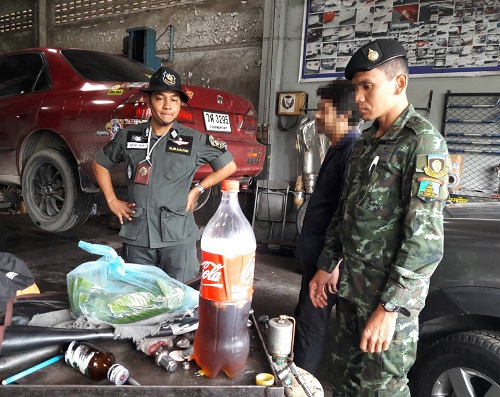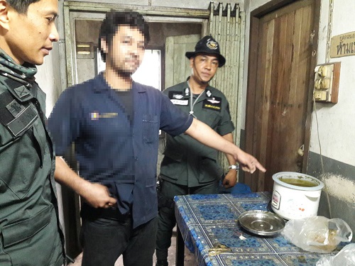 6. ผู้ต้องหาพร้อมด้วยของกลาง คือ น้ำต้มใบกระท่อมพร้อมอุปกรณ์การต้มโดยกล่าวหาว่า ผลิตและมียาเสพติดให้โทษประเภท 5(น้ำต้มใบกระท่อม) ไว้ในครอบครองโดยผิดกฎหมาย